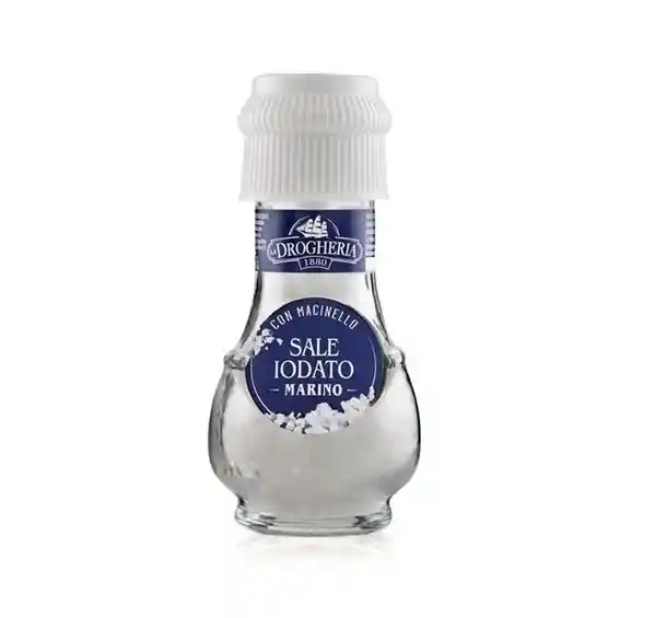 La sal yodada es una sal marina versátil, Apta para cualquier uso en la cocina, caracterizada por su color blanco. Se obtiene por evaporación del agua de mar y posteriormente añadidos de yodato de potasio. Frasco de vidrio con molinillo. Hecho en Italia.