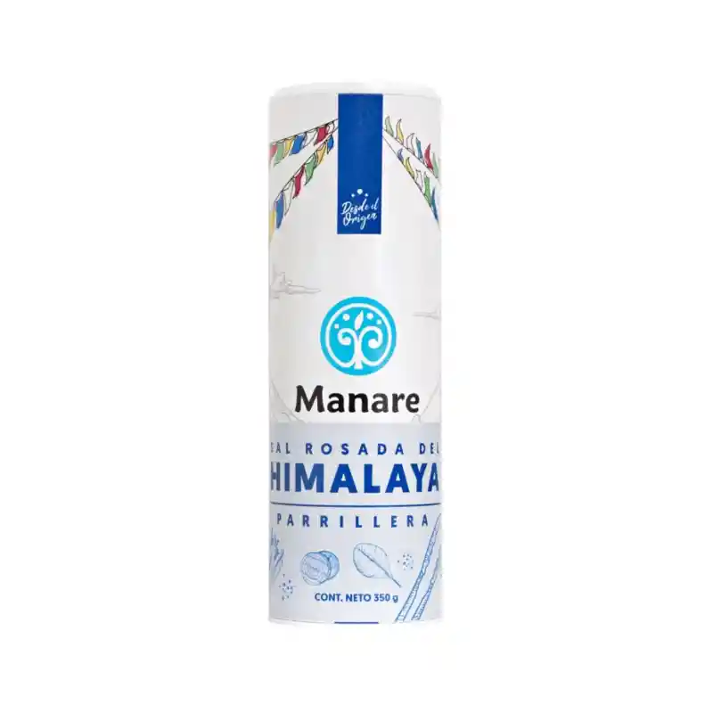 La misma sal rosada del himalaya Manare de siempre, pero ahora en este práctico formato. La gran diferencia es que nuestra sal parrillera tiene cristales de sal de entre 1 y 2 mm por lo que es más "fina" que la sal rosada gruesa tradicional en la que los granos de sal son de entre 3 y 5 mm. Esto hace que la sal parrillera sea ideal para agregarla a verduras asadas y todo tipo de carnes. Ingredientes: 100% sal rosada del Himalaya y yodato de potasio.