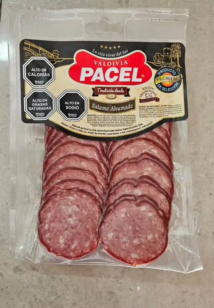 Salame ahumado artesanal premium de Valdivia. Paqute de 125 gr.