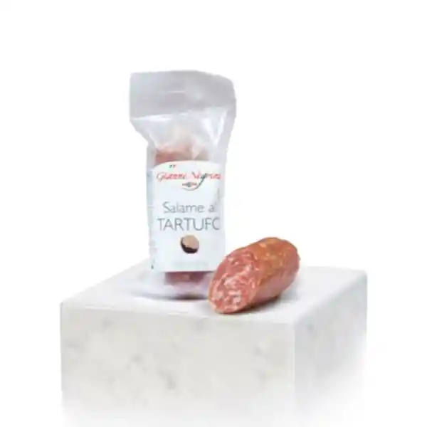 INGREDIENTES: Carne de cerdo, sal, dextrosa, especias, trufa negra (tuber aestivum) 1%, aromas, antioxidante (ascorbato de sodio), conservantes (nitrito de sodio, nitrato de potasio). tripa no comestible INFORMACIÓN NUTRICIONAL por 100g: Energía 1753 kJ / 422 kcal Grasa 33 g de los cuales ácidos grasos saturados 12 g Hidratos de carbono 0,1 g, de los cuales azúcares 0,1 g Proteína 31 g Sal 4,5g. ORIGEN DE LA CARNE: UE PESO: 125g ALMACENAMIENTO: mantener en lugar fresco, máximo 22°C.