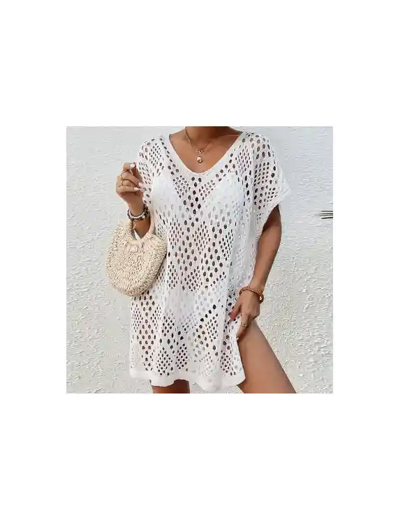 Dale un toque sofisticado a tu look playero con esta elegante salida de playa tipo cover-up. Diseñada con una abertura lateral y mangas estilo murciélago, combina comodidad y estilo en una prenda que es un auténtico must-have esta temporada. Confeccionada en tela resistente al cloro, mantiene su forma, color y textura incluso con el uso frecuente. Su diseño ligero y fluido la convierte en el complemento ideal para acompañar tus trajes de baño, agregando un aire chic y relajado a tus días de playa o piscina. ¡Haz de esta salida de playa tu accesorio imprescindible para lucir increíble bajo el sol!