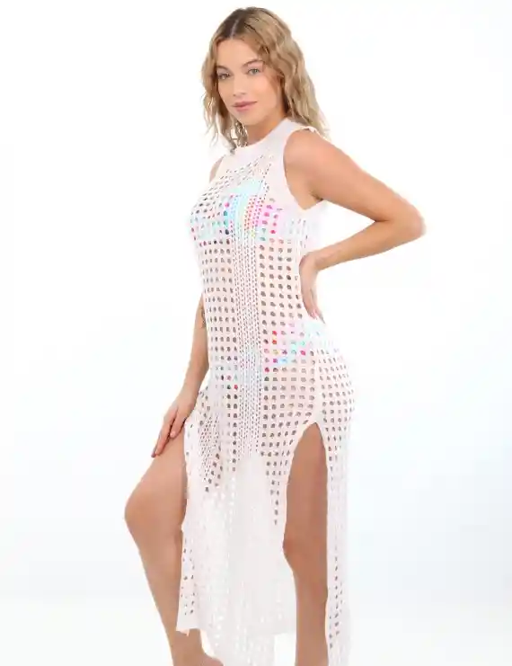 Eleva tu look playero con esta sofisticada salida de playa estilo vestido largo. Su diseño incluye una abertura lateral pronunciada que añade un toque sexy y un cuello redondo que resalta su estilo elegante y minimalista, convirtiéndola en un auténtico must-have para esta temporada. Confeccionada en tela de alta calidad resistente al cloro, garantiza durabilidad, conservando su forma, color y textura incluso con el uso frecuente. Su tejido ligero y fluido proporciona frescura y comodidad, haciéndola el complemento ideal para tus trajes de baño, ya sea en la playa o en la piscina. ¡Haz que esta prenda versátil y chic sea tu favorita para lucir increíble bajo el sol con total confianza!