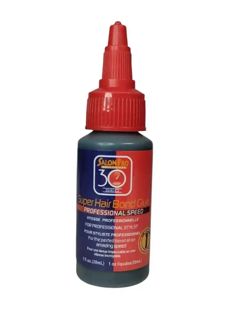 Pegamento capilar profesional de alta fijación diseñado para instalar extensiones, cortinas y sistemas de cabello de forma segura y duradera, proporcionando una adhesión fuerte y resistente para mantener el peinado por más tiempo. Ideal para uso profesional y doméstico. Contenido 1 oz (30 ml). Producto original marca Salon Pro. Uso externo.