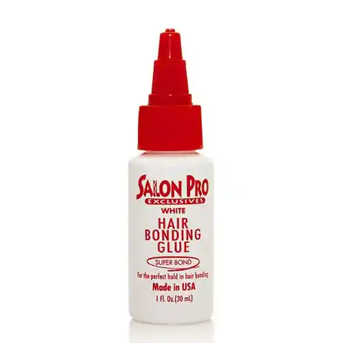 Pegamento capilar profesional en color blanco diseñado para fijar extensiones, cortinas y sistemas de cabello de forma segura y duradera, proporcionando una adhesión fuerte y resistente para mantener el peinado por más tiempo. Ideal para uso profesional y doméstico. Contenido 1 oz (30 ml). Producto original marca Salon Pro Exclusives. Uso externo.
