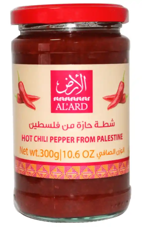 SALSA DE AJI PALESTINO - ESTILO SRIRACHA RED HOT CHILI PEPPER, Úsalo en todas tus comidas!! Salsa de ají con un nivel de picor medio muy tolerable y con un sello único e inigualable. Apto para sandwich, papas, hot dog, pebre, salsas y comidas en general. Es un producto gourmet infaltable. INGREDIENTES: mix de ajíes rojos palestinos, sal, vinagre, ajo. Directo de Palestina, Nablus. Cosechados y producidos a mano