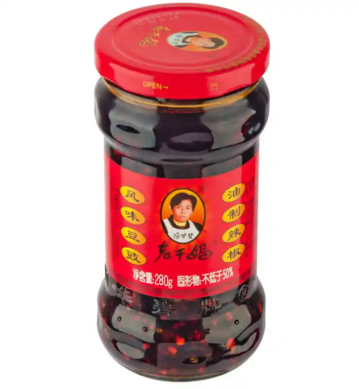 Esta versión de salsa picante china, es una mezcla de ajíes asados con soja negra en conserva en aceite de soja. El resultado de estos dos, son ricos "sabores umami." La gracia de esta salsa/pasta china picante, es que su base es oleosa y la textura del poroto negro se conserva muy bien, es casi crujiente. Es tan rica que incluso puedes comerla sola, acompañando un plato de arroz blanco, carne de pollo o un chapsui de verduras. El color de su aceite es rojo, como el de la paprika y el picor que deja en boca es bastante ahumado, fuerte y duradero. Es un sabor totalmente distinto y exótico.