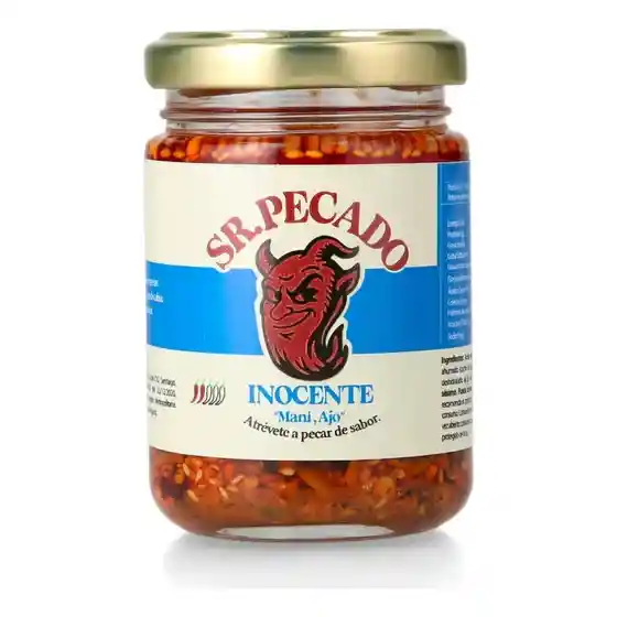 La salsa Inocente es la versión más suave de la Original. Contiene Maní & Ajo. Es un Blend Gourmet de semillas, maní y especias ahumadas, con un suave picor del cacho de cabra. Atrévete a pecar de sabor.