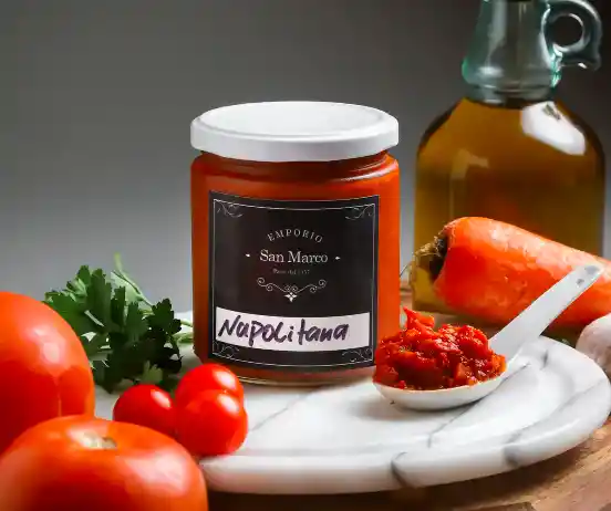 Salsa Napolitana hecha con tomates italianos,zanahoria,cebollas y especies. Sin Carne. Frasco sellado al vacío . Duración: 5 días una vez abierto refrigerado.