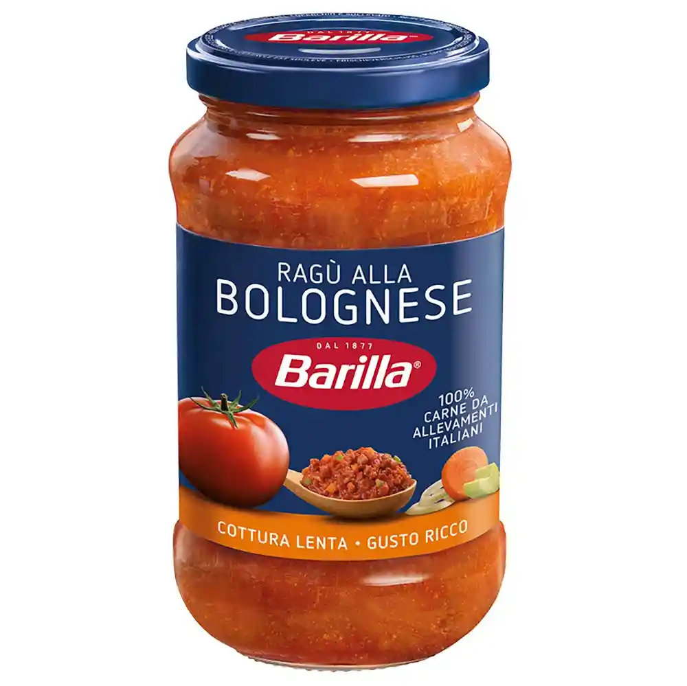 Salsa Pasta Bolognesa x400 gr Barilla marca exclusiva Características La receta boloñesa de Barilla es la base perfecta para crear una salsa boloñesa tradicional una de las más populares de todas las salsas. La boloñesa de Barilla contiene tomates 100% italianos y sin conservantes añadidos. Mezcla de manera experta estos tomates con los sabores simples de cebolla zanahoria ajo y albahaca. Simplemente agregue carne para crear una sabrosa salsa boloñesa. Sin gluten Sin conservantes agregados.