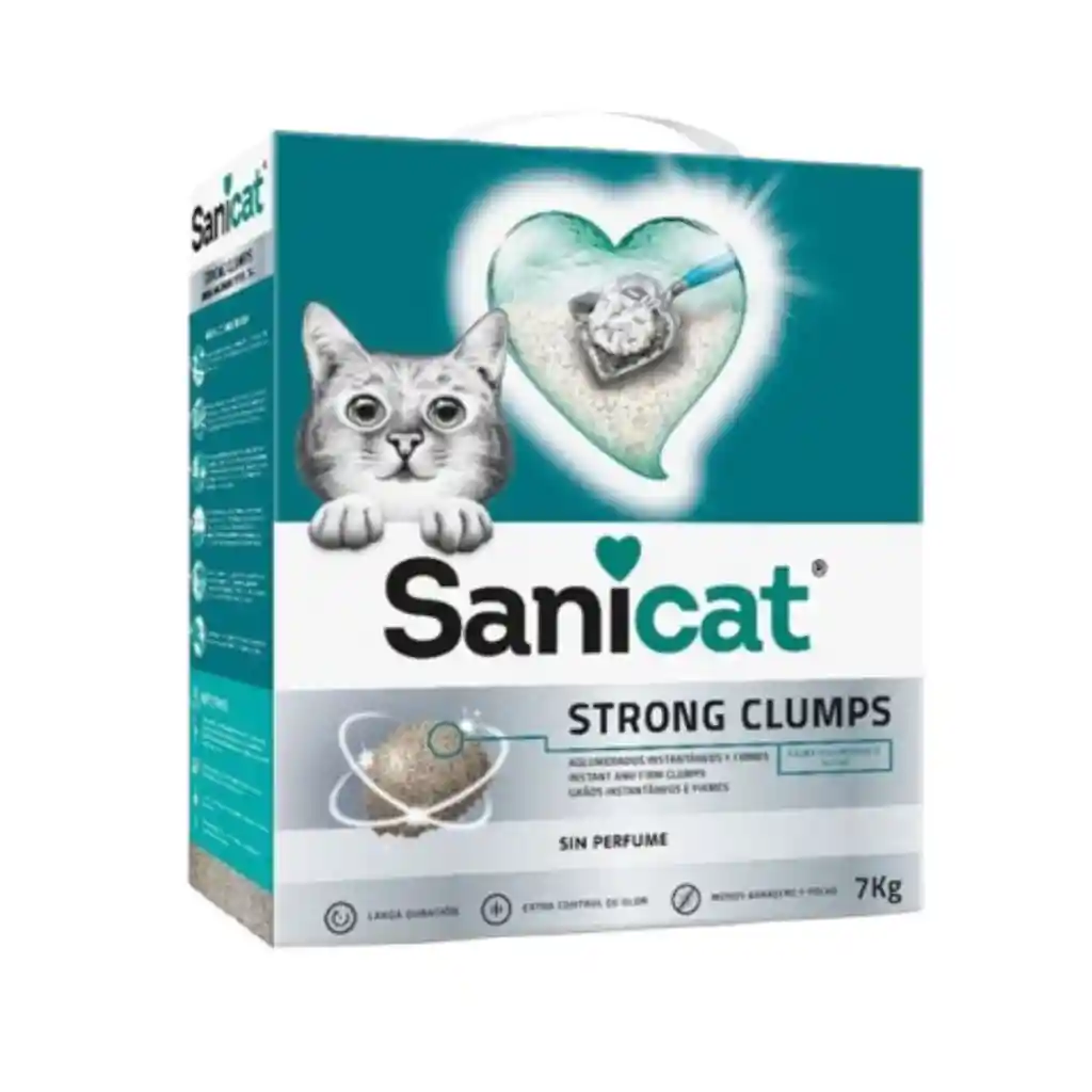 Sanicat Strong Clumps es una arena que produce aglomerados instantáneos y compactos, eliminando de forma natural y eficiente los malos olores al absorber el líquido, haciéndola una arena única en su tipo. Compuesta de auténtica bentonita de sodio de Wyoming, genera aglomerados que son muy fáciles de retirar que deben eliminarse periódicamente para mantener una limpieza e higiene duradera de la bandeja. No viene perfumada. Sanicat lleva más de 60 años fabricando arenas que son respetuosas con los gatos, los hogares y el planeta. Por ello, todos sus productos están envasados en papel y cartón, habiendo reducido el uso del plástico al 0%. Las ventajas de Sanicat Strong Clumps son: Aglomerados compactos fáciles de retirar y de limpiar para una higiene máxima. Retiene el mal olor mientras absorbe la orina. No genera polvo y es suave para las patas de los gatos. Arena gruesa aglomerante para mantener las patas y los suelos limpios. Cantidad: 7 kg.