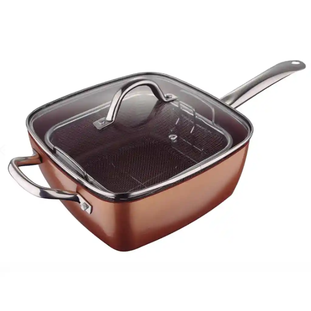 Con el Sartén cuadrado Bergner, podrás preparar muchos deliciosos platillos diferentes. Gracias a su versatilidad y a su diseño cuadrado obtendrás el doble de espacio para cocinar. Utilízalo para freír, asar, saltear y cocer a fuego lento con este sartén! Sus bases de aluminio permiten un calentado rápido y uniforme. Apto para todo tipo de cocina: INDUCCIÓN, Eléctrica, Gas, Halógena y Vitro.
