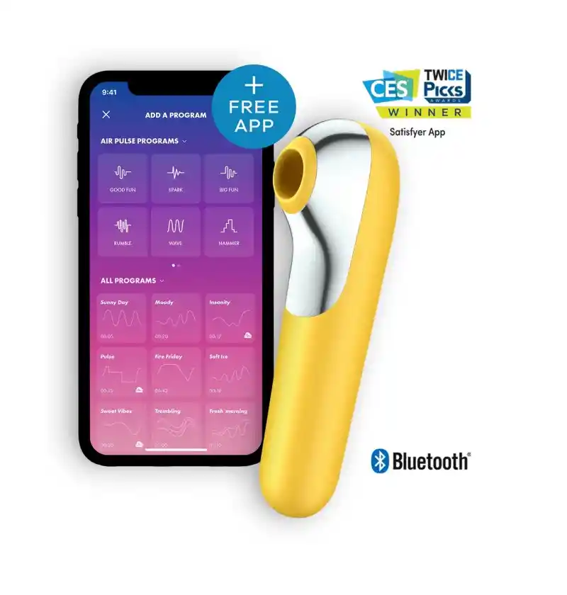 Gracias al vibrador de ondas de presión Dual Love, disfrutarás de una sensual combinación de ondas de presión excitantes y una potente vibración capaz de acariciar de forma sensual tu clítoris o el punto G. Como el vibrador se puede utilizar de las dos maneras, podrás decidir lo que más te apetece: El cabezal de apoyo fabricado con silicona inocua para el cuerpo estimula el clítoris mediante la eficaz tecnología Air Pulse, mientras que el mango insertable produce una estimulación vaginal con potentes vibraciones. El Dual Love también luce genial: Su diseño ergonómico está adornado por finos detalles de aspecto metálico. Dual Love se puede controlar tanto a través del intuitivo panel de control como a través de la aplicación Satisfyer Connect, disponible de forma gratuita para Android, iOS y Apple Watch. Con la aplicación no solo podrás controlar el dispositivo de forma remota o cedérselo a tu pareja, sino que también podrás crear tus propios programas de vibración y compartirlos con otros usuarios. Gracias a su acabado impermeable (IPX7), el Dual Love también te acompañará bajo la ducha, en la bañera o en una piscina privada. Si el generador de placer se queda sin aliento, las baterías integradas se pueden recargar mediante el cable de carga USB incluido. Estimulación del clítoris por ondas de presión y estimulación del punto G por vibración 2 motores de control separado Silicona agradable al cuerpo Posibilidad de utilizar también sin aplicación 11 intensidades de tecnología de ondas a presión + 11 programas de vibración Programas predefinidos editables Infinita variedad de programas a través de la aplicación Modo de susurro Batería de iones de litio Cable de carga magnético por USB incluido Fácil de limpiar Resistente a salpicaduras
