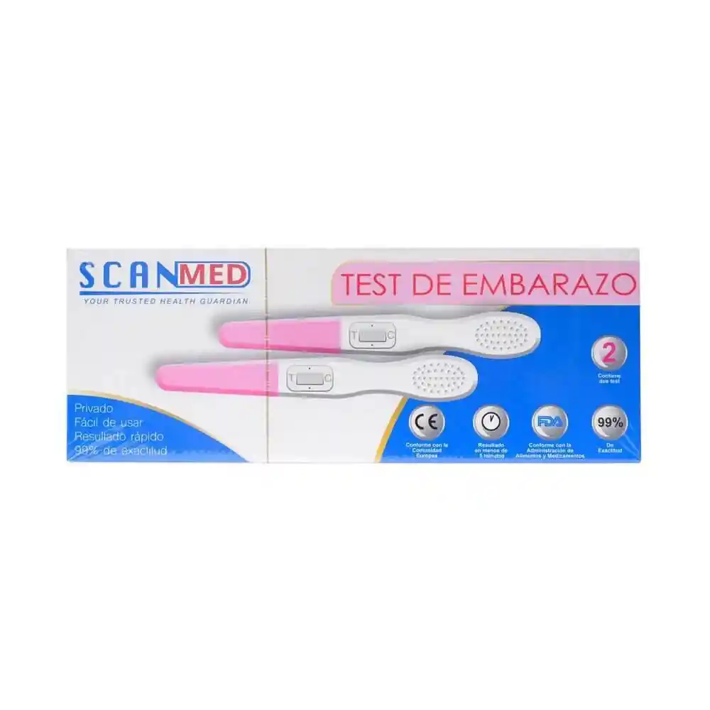 Scanmed Test de Embarazo de un paso. contienes 2 test en forma de lápiz.