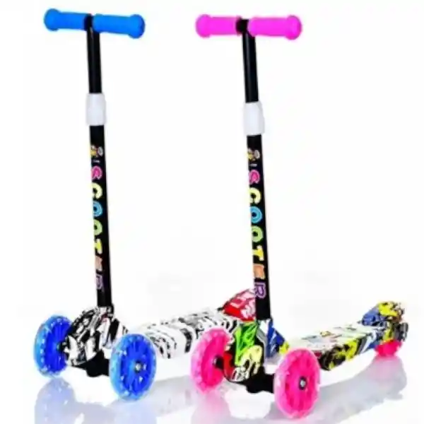 Ruedas silicona c/luz, rueda trasera doble creando un control adicional ,4 Alturas manubrio máximo 70 cm.Crea un deslizamiento muy suave y un paseo tranquilo. + 3 años. Enseñan equilibrio y coordinación. Medidas: 70 cm altura CONFIRMAR COLOR