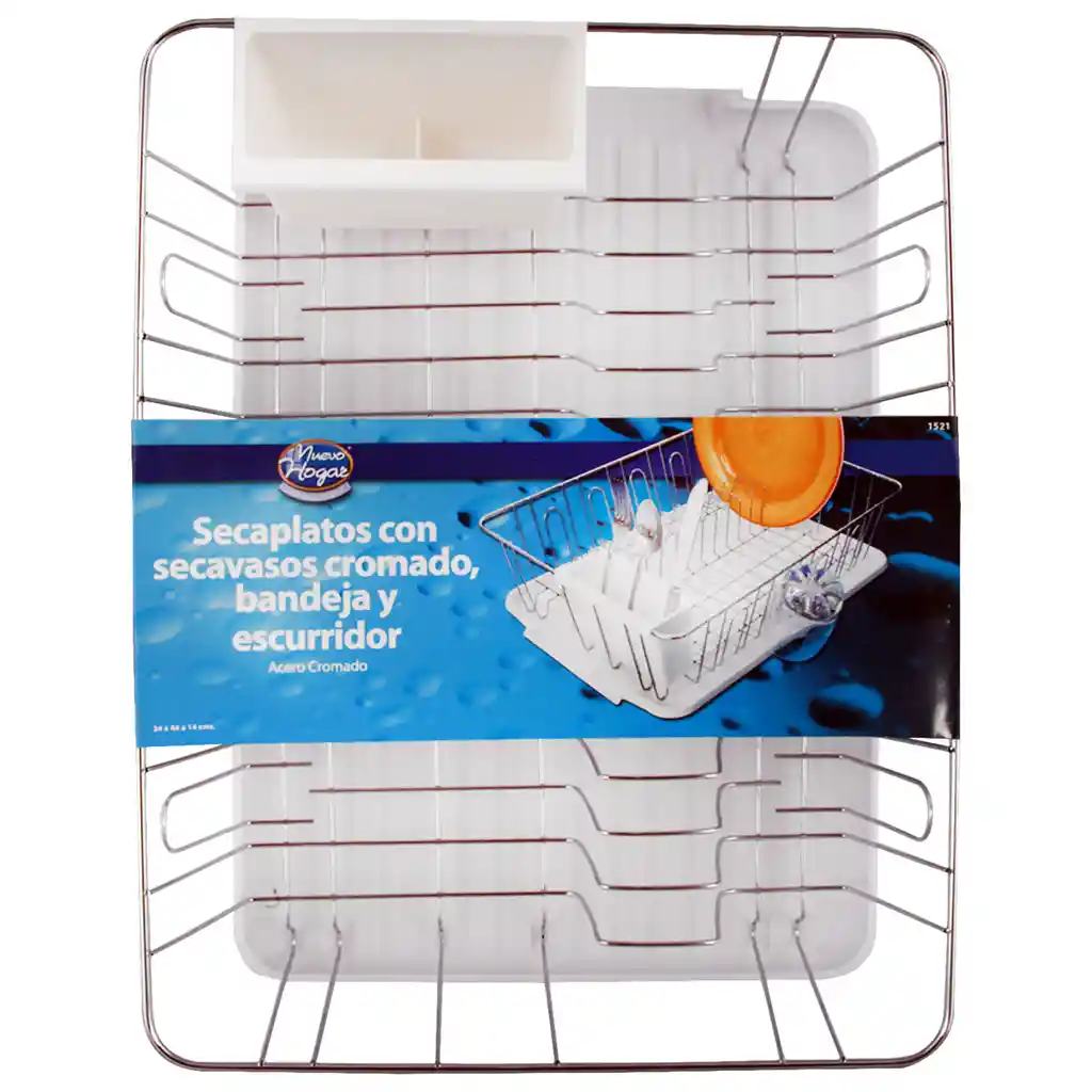Seca platos Nuevo Hogar con bandeja cromado escurridor blanco