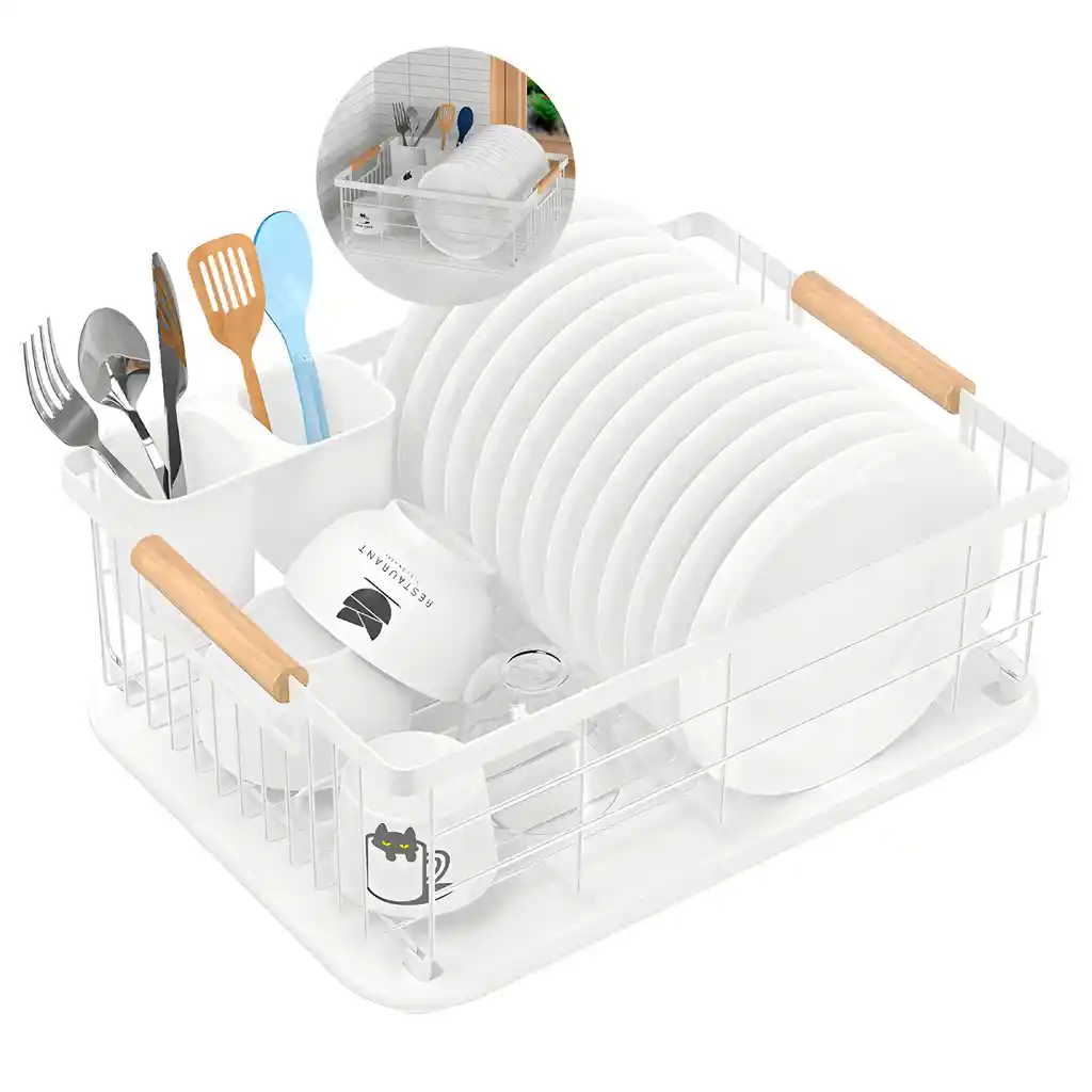 Secaplatos Escurridor 1 Nivel Con Base Piedra Diatomita Set de tapetes absorbentes para secado de vajilla: Este conjunto incluye alfombrillas de secado para la cocina de 40 x 30 cm, de tamaño más amplio que los modelos habituales, lo que permite acomodar una mayor cantidad de utensilios. Además, se incorpora un soporte metálico de acero inoxidable que facilita la organización y almacenamiento. Ideal tanto para la superficie de la cocina como para la del baño. Absorción rápida y eficiente: Fabricadas con piedra de diatomeas natural, estas bases ecológicas tienen la capacidad de absorber la humedad en cuestión de minutos. Ayudan a evitar charcos o marcas de agua, dejando las superficies limpias y secas en todo momento. Soporte metálico antideslizante: El escurridor de acero inoxidable incluido te permitirá ordenar platos, cubiertos y vasos de manera práctica. En su base cuenta con patas de goma que evitan que se mueva, manteniéndose estable durante el uso. Secado rapido: Estas alfombrillas de piedra diatomea son útiles para secar utensilios recién lavados ya que tienen una gran rapidez de secado en 60 segundos. Limpieza sencilla: Para manchas ligeras, basta con pasar un paño húmedo o enjuagar con agua corriente. Es importante evitar verter líquidos muy pigmentados como café o vino, ya que pueden dejar marcas en la superficie de la piedra. Especificaciones: Colores: Blanco Materiales: Acero inoxidable, Piedra diatomita, Madera. Dimensiones: 40X30 CM Peso: 1,8 KG Incluye: 1 Secaplatos Escurridor 1 Nivel Con Base Piedra Diatomita. (No incluye cubiertos ni vajilla)