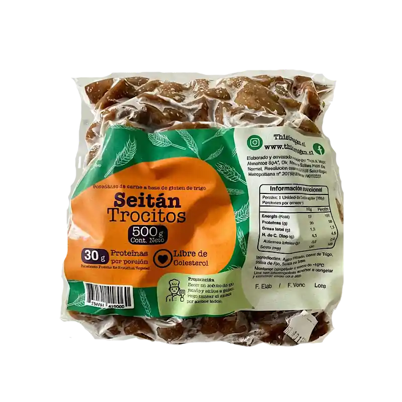 El Seitán en Trocitos de la marca chilena This Is Vegan es un sustituto de carne de origen 100% vegetal, diseñado específicamente para imitar la textura y el uso de la carne picada o trozada en diversas preparaciones culinarias