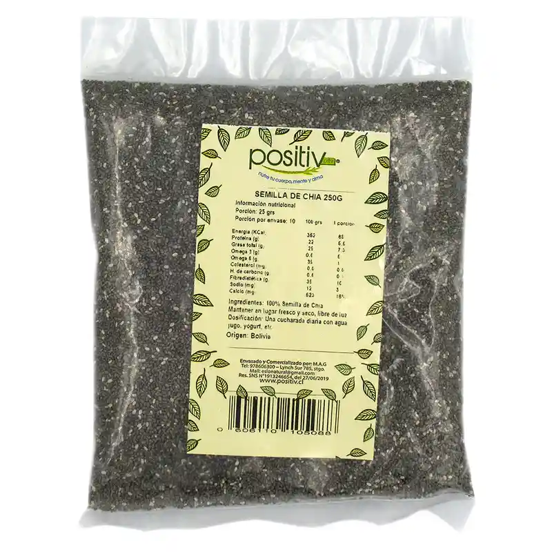 Semilla de Chía Entera 250 gr Marca Positiv.