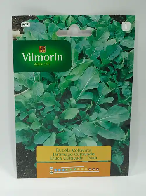 Eruca Sativa. Planta rica en vitaminas y minerales, cultivada todo el año. Sembrar durante la primavera y el verano directamente en la tierra en líneas a 20 cm de distancia y 2 cm de profundidad. Recoger desde las 6 a 8 semanas después de haber sembrado, proteger durante el invierno para prolongar la cosecha.