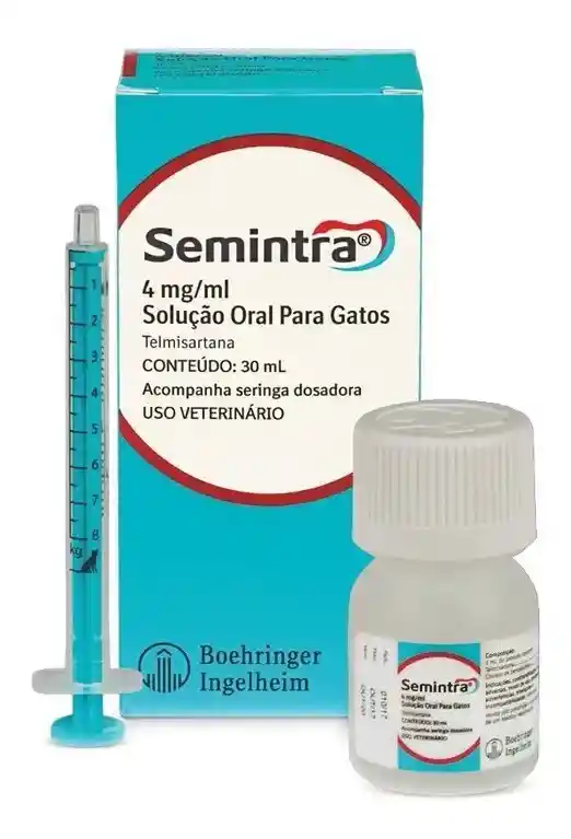 Semintra es una solución oral, cuya sustancia activa es el telmisartán, utilizada para el tratamiento de la enfermedad renal crónica (ERC) y la hipertensión sistémica en gatos. Usos principales: Enfermedad renal crónica (ERC): Semintra está indicado para la reducción de la proteinuria, una condición en la que se excreta un exceso de proteína en la orina. La reducción de la proteinuria puede ralentizar la progresión de la ERC, una enfermedad común en gatos de edad avanzada. Hipertensión sistémica: La solución también se usa para tratar la presión arterial alta en gatos. Esta condición suele estar estrechamente relacionada con la enfermedad renal en felinos. Concentraciones: El producto está disponible en concentraciones de 4 mg/ml y 10 mg/ml, lo que permite dosificarlo según la condición específica del gato. Administración: Puede administrarse directamente en la boca o mezclado con una pequeña cantidad de alimento. La dosificación debe ser indicada por un veterinario. Efectos secundarios y precauciones: Efectos secundarios leves: En algunos casos, se han reportado efectos gastrointestinales leves y transitorios, como vómitos, diarrea o heces blandas. Elevación de enzimas hepáticas: Raramente se ha observado un aumento de las enzimas hepáticas, que suele normalizarse al suspender el tratamiento. Control veterinario: Los efectos secundarios farmacológicos, como la reducción de la presión arterial y la disminución del recuento de glóbulos rojos, requieren monitoreo veterinario para ajustar la dosis si es necesario. No usar en gestación o lactancia: Semintra no debe utilizarse en gatas gestantes o lactantes. CONTIENE: 30 ml y una jeringa dosificadora. VENTA BAJO RECETA VETERINARIA Antes de realizar la compra de este producto, deberás enviar la receta veterinaria a nuestro correo recetas@ohpets.cl Si al momento de recibir el pago no contamos con el documento, no podremos proceder a su entrega en tienda ni al envío del mismo a tu domicilio. Para cumplir con la normativa legal, la receta veterinaria debe contener lo siguiente: - el nombre, RUT, firma y timbre del médico veterinario que emitió el documento - el nombre del tutor y de la mascota a quién se le recetó el medicamento - la fecha de emisión no debe ser superior a 30 días Ante cualquier duda, por favor no dudes en contactarnos! Los queremos sanitos!