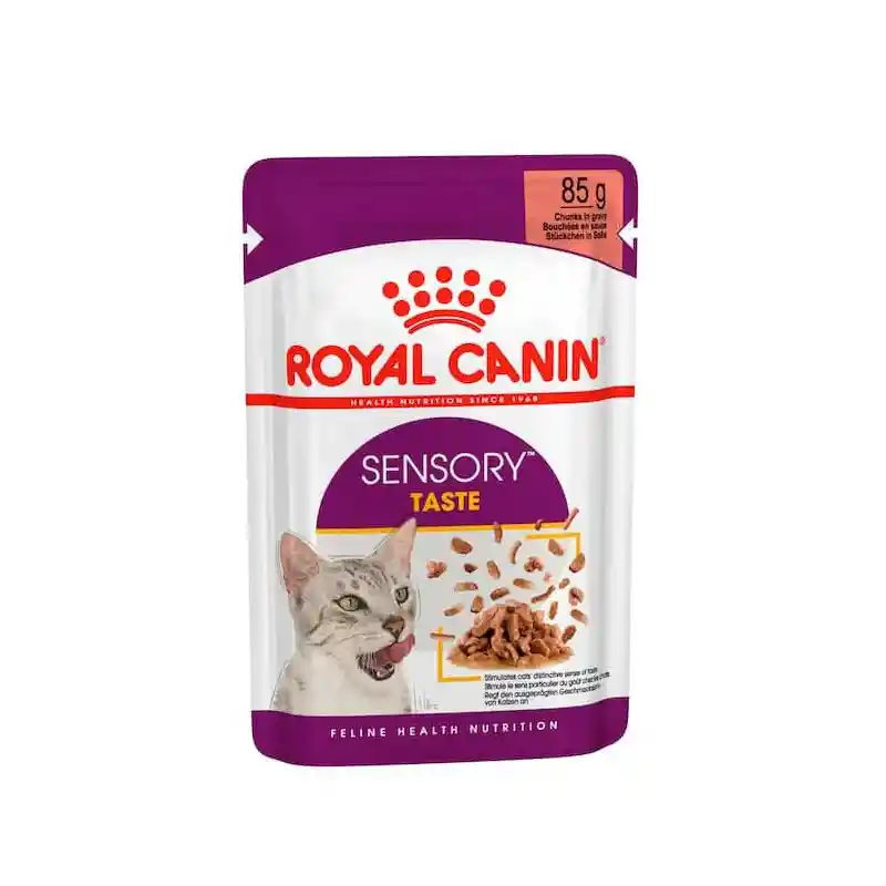 Royal Canin Sensory Taste Gravy es un alimento húmedo indicado para gatos adultos y preparado para despertar la estimulación gustativa de tu gato. Estos deliciosos bocaditos en salsa están especialmente formulados con sabores salados con toques tostados, cárnicos y caramelizados para estimular y atraer el particular sentido del gusto de tu gato, convirtiendo su ritual de alimentación en una experiencia rica sensorialmente. Su alta concentración de nutrientes es preferida de forma instintiva por los gatos adultos, haciendo de este alimento húmedo un plato irresistible. También ayuda a mantener la salud del sistema urinario de tu gato.