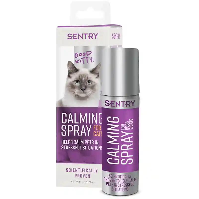 Sentry Spray Calmante brinda comodidad temporal durante ocasiones estresantes cuando su mascota necesita algo "extra" mediante la liberación de feromonas calmantes. El spray Calming está destinado a ser rociado en el área donde la mascota pasará el tiempo. No está diseñado para ser rociado directamente sobre su mascota, lo que puede causar una respuesta negativa al asustar a la mascota.