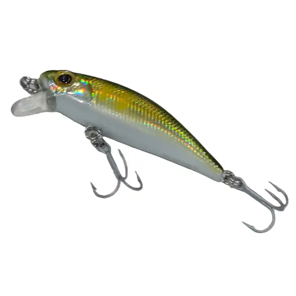 SEÑ SILSTAR 4c 2g PLA/VER J533 Pescado artificial Marca Silstar Modelo Mini-Bait J533 item 9411 Movimiento de nado tipo Rattling Sonoro por unas bolitas en su interior Tipo Sinking profundiza hasta 2.5 mts manteniendo su movimiento Señuelo de Fibra Tamaño 4,2 cms Peso 2,2 gms 2 anzuelos triples zincados blancos del nr.8 Colores Lomo negro migrando a verde claro Lateral Verde claro migrando a plata Base Plata Ojo negro