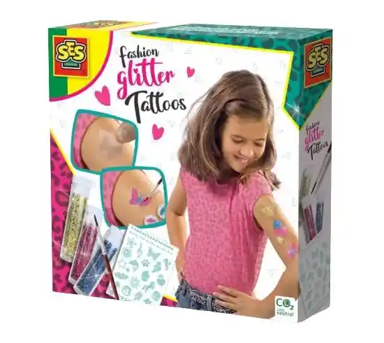 Crea tus propios tatuajes de brillantina de moda con este set de SES Creative. Pégate en la piel las pegatinas transparentes a doble cara y dales un toque de brillantina en la parte adhesiva con el pincel. Personaliza tus tatuajes probando con colores de brillantina diferentes o incluso mezclando la brillantina. Testado estéticamente y fácil de eliminar de la piel. Se recomienda de 5 años en adelante.