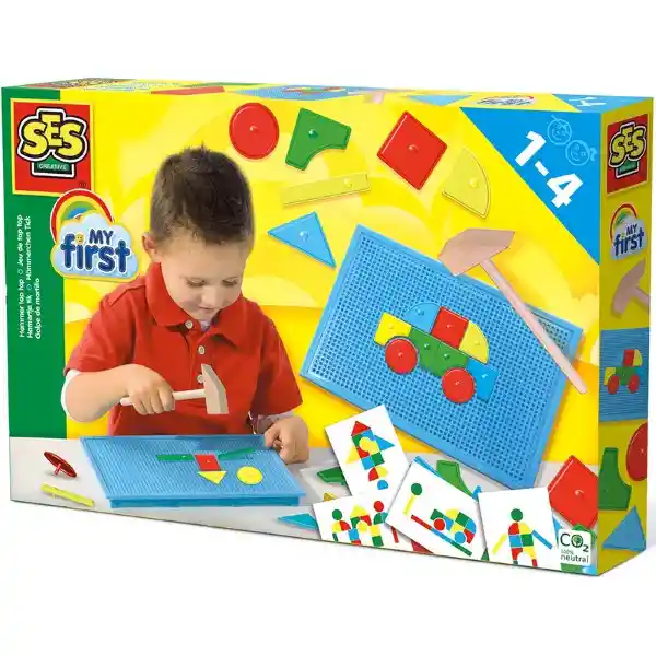 Descripción Edad : 1 Año + un Clásico de Ses Adaptado Para Los Más Pequeños. Golpea Las Formas de Plástico Con el Martillo en la Pizarra y Crea Preciosas Figuras! Completamente Seguro Martillo Sin Clavos. el Set Incluye Divertidos Ejemplos Pero También Puedes Utilizar tu Propia Imaginación. Fabricado en Holanda. Contenido: Martillo. Tablero de Clavijas de Plástico. Diferentes Formas de Colores. Ejemplos.