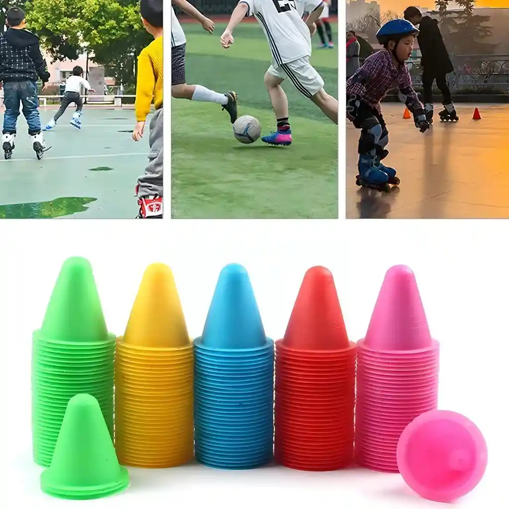 El set de 10 mini conos multicolor de 9 cm es ideal para mejorar la agilidad y coordinación. Estos conos de campo son perfectos para usar como conos de fútbol, agilidad y fitness. Pueden utilizarse en cualquier superficie: césped, concreto, suelos de gimnasio, cemento, césped artificial y mucho más. Son ligeros y portátiles, se pueden apilar uno sobre otro para un fácil almacenamiento y transporte. Son resistentes a la decoloración y a los pisotones, lo que permite su uso repetido. Características: - Conos de colores brillantes, ideales para establecer límites de campo para taladros de rapidez o para configurar tramos de obstáculos. - Hecho de material PE respetuoso con el medio ambiente, no tóxico y sin olor peculiar, duradero de usar. - La superficie del cono es muy lisa sin rebabas, es adecuada para deportes o entrenamiento de patinaje. - Los mini conos se pueden utilizar para múltiples propósitos, como conos de fútbol, agilidad y conos de marcadores de fitness. También se pueden utilizar en cualquier superficie: zacate, hormigón, suelos de gimnasio, cemento o césped artificial. - Los conos de plástico son ligeros y portátiles para que puedas llevarlos contigo en una bolsa. Son ideales para entrenamiento de fútbol, patinaje sobre ruedas, fútbol, ciclismo, entrenamiento, taladros, dribbling de baloncesto, cursos de obstáculos y otros deportes. - Paquete de 10 conos de calidad. - Material: PVC - Tamaño: 9 cm de Alto x 7,5 cm de Ancho