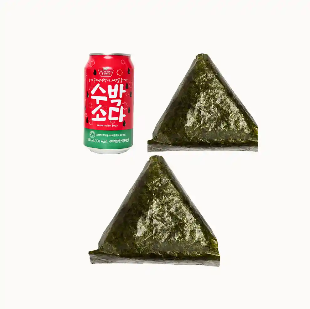El Set 2x Onigiris + 1x Bebida Lata reúne una combinación ideal para quienes buscan una comida práctica, sabrosa y refrescante. Incluye dos onigiris estilo gimbap triangular, elaborados con arroz blanco y envueltos en alga nori crujiente gracias a su sistema de doble envoltura.