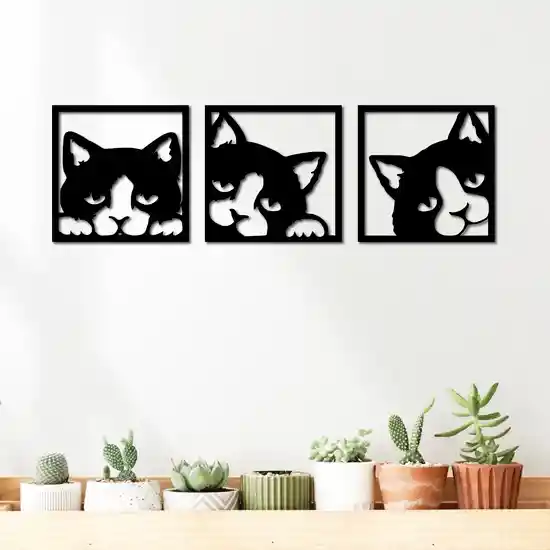 ¡Bienvenidos a Fun Republic! ¿Te encantan los gatos? Traemos un set de 3 cuadros decorativos para pared, que son perfectos si amas a los Michis. Medidas: 20 cm x 20 cm x 3 mm Corte láser de alta precisión. Diseño exclusivo de Fun Republic. Fácil instalación. Incluye adhesivos. No necesita ganchos. Es importante que al momento de la instalación la superficie esté lisa, limpia y seca para obtener una mejor adherencia. Se adhiere permanentemente a la pared de forma resistente.