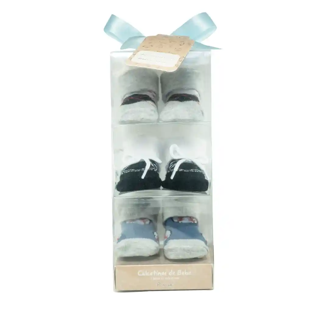 Un bonito surtido para ir siempre a juego con las prendas del bebé y a un excelente precio! Set de 3 pares de calcetines para bebé. Tonos de Rosado y Celeste. Linda presentación en cajita para regalo.