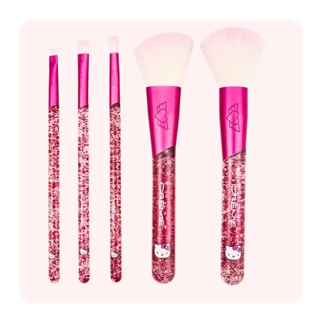 Las brochas más cute que podrás tener! Con 5 brochas de tamaños distintos para cada paso de tu rutina de maquillaje. Fácil de usar y ultra suave, para aplicar y difuminar sombras, ilumindores y rubores.