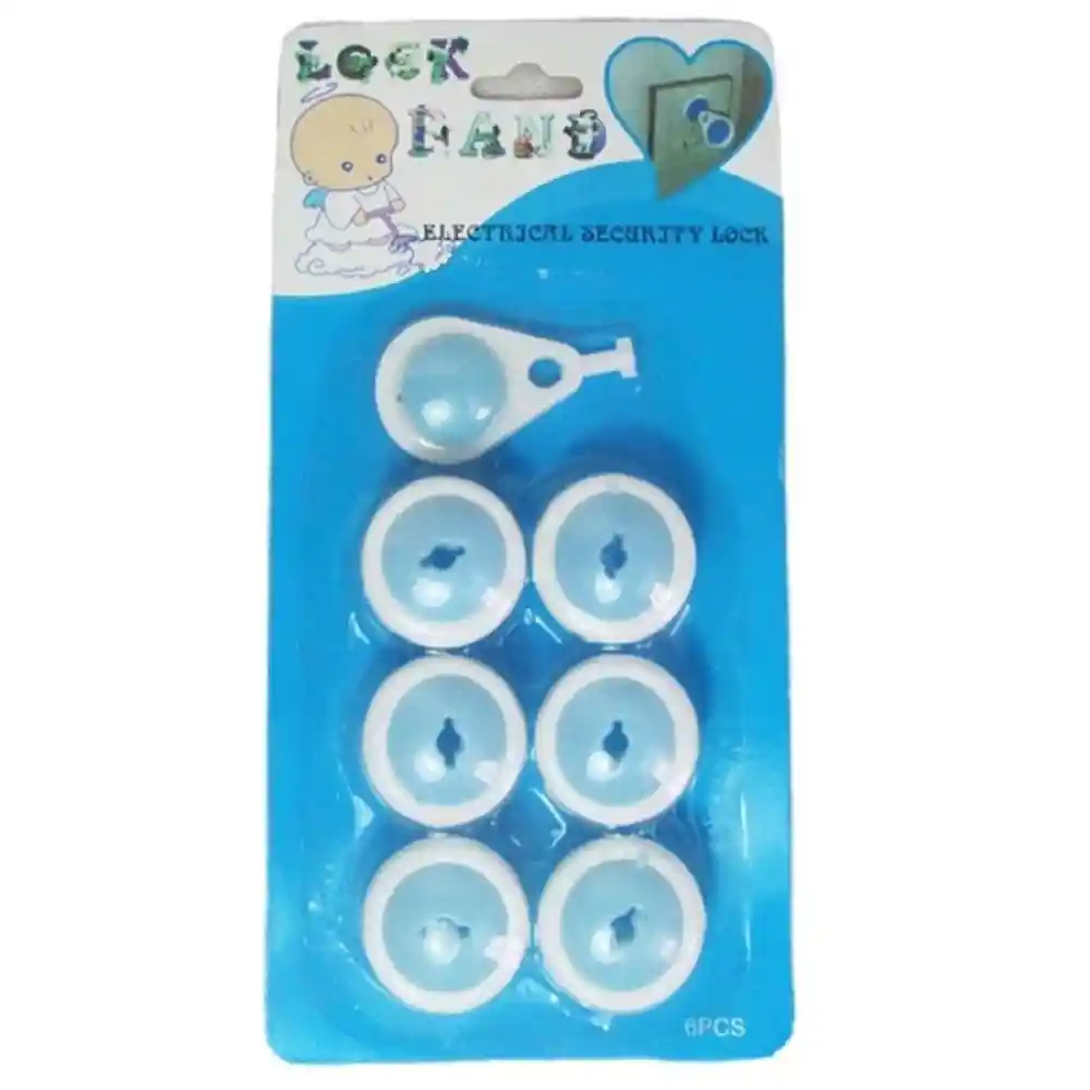 Protector para Toma Corrientes Protección para los Niños y Bebés - Material: de plástico. - Fácil de instalar. - Simplemente conecta la tapa del orificio del enchufe eléctrico en los agujeros de enchufe. - Esta tapa de seguridad protege a tus bebés contra golpes eléctricos. - Mantén a tu hijo siempre seguro y evita accidentes. - Llave especial para retirar los tapones. - Color Azul con Blanco. Contenido: - 1 Llave para retirar los protectores - 6 Protectores de tomacorriente, enchufe.