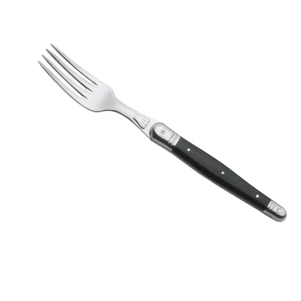 Set 6 Tenedores Postre Negro Laguiole Jean Dubost Sofisticación y carácter definen este elegante set de 6 tenedores de postre Negro de Laguiole Jean Dubost. Su acabado oscuro aporta un contraste moderno y refinado a la mesa, convirtiendo cada sobremesa en un momento especial lleno de estilo. Diseñados para brindar equilibrio y comodidad en cada uso, estos tenedores realzan la presentación de tus postres con una estética contemporánea y distinguida. Inspirados en la tradición cuchillera francesa, Laguiole Jean Dubost ha construido su prestigio a lo largo de generaciones, combinando excelencia en el trabajo del acero, diseño cuidado y una herencia que transforma cada pieza en un símbolo de calidad. Ideales para celebraciones, cenas elegantes o para dar un toque sofisticado al día a día. Características Marca: Laguiole Jean Dubost Origen: Francia Material: Acero inoxidable Mango: Resina Cantidad: Set de 6 unidades Apto para lavavajillas *imagenes referenciales*