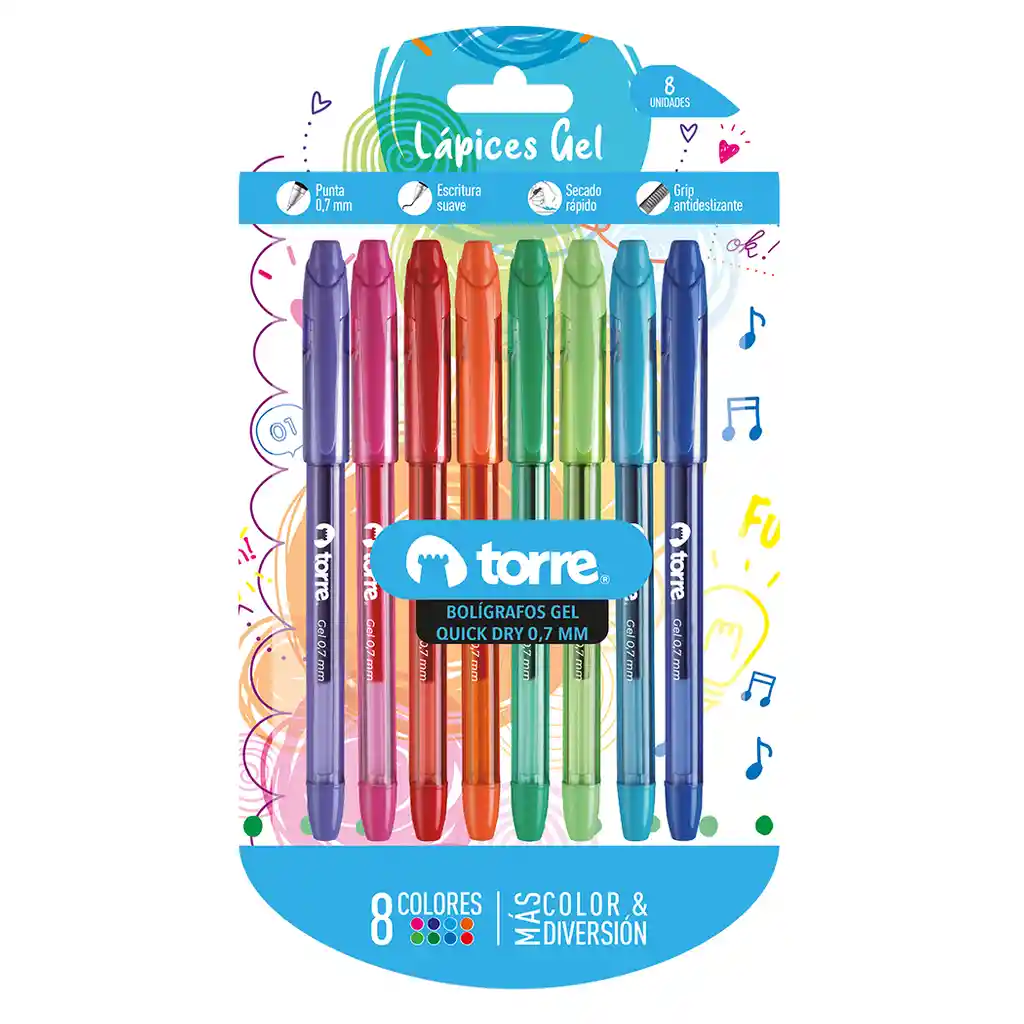 Set 8 Bolígrafo Gel Torre Quick Dry 07 Color Fun