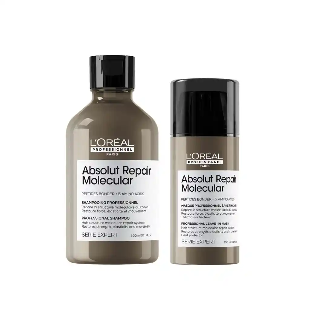 Set Absolut Repair Molecular Shampoo y Máscara Reparadora L'Oréal Professionnel Repara 2 años de daño en un solo uso con el set Molecular.