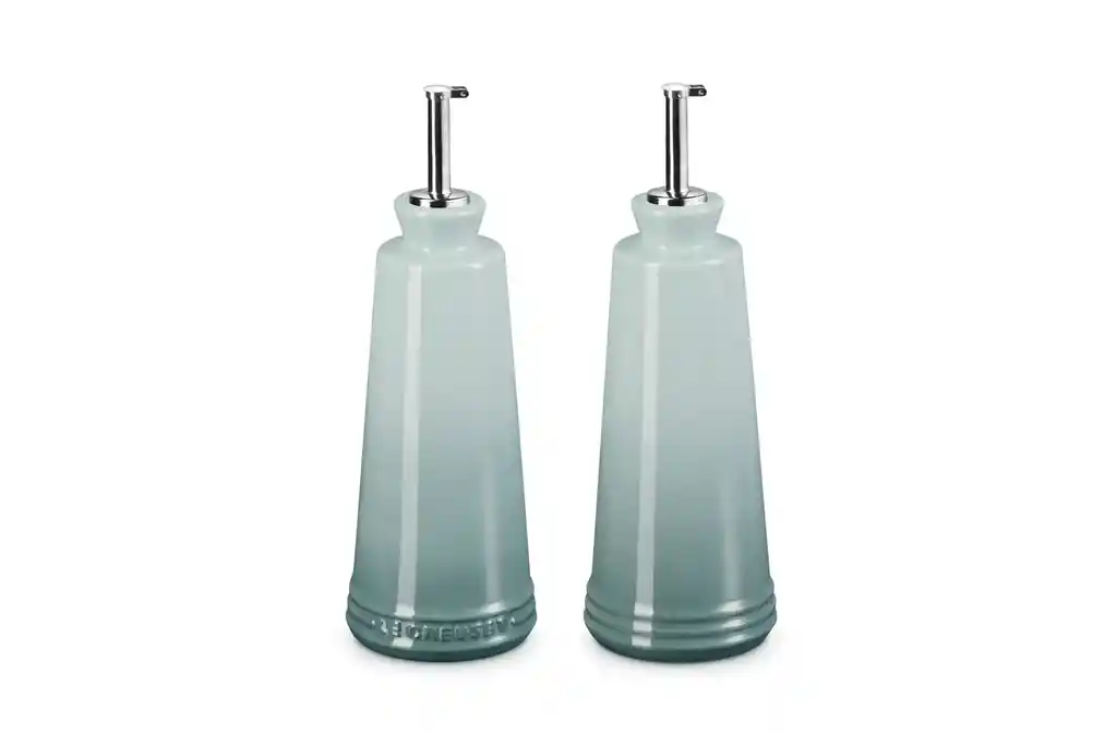 Sazona tus platos y ensaladas favoritas con el set de aceite y vinagre de Le Creuset. Elaborados en cerámica de gres, son resistentes al uso diario y no absorben olores ni sabores, la boquilla permite dosificar y verter el contenido sin inconvenientes. Garantía de 5 años.