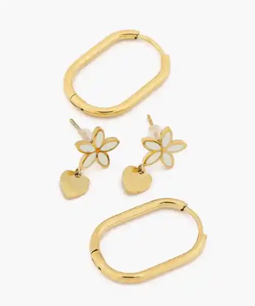Set Lounge Con 2 Unidades. Aros de Acero Inoxidable un Par de Argollas y un Par de Flor Con Colgante.