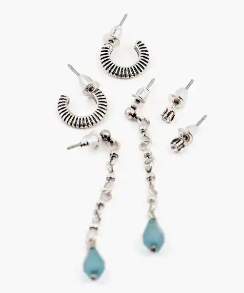 Set Lounge Con 3 Pares. Aros un Par de Brillantes un Par Con Mostacilla Colgante y un Par de Argollas.