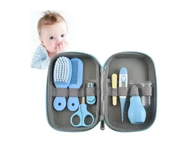 Las herramientas esenciales para el cuidado del bebé de 8 piezas cubren sus necesidades. Viene con cepillo para bebé, peine para el cabello, cortaúñas, lima de uñas, tijeras, limpiador de nariz, termómetro y cepillo de dientes para dedos. Detalles especialmente diseñados para la comodidad y seguridad del bebé. Fácil de mantener la salud y la comodidad de su ser querido. Se incluye un estuche de almacenamiento duradero para que los padres puedan tener cada artículo convenientemente a mano, ya sea que estén en casa o mientras viajan. Características: 1. Las herramientas esenciales para el cuidado del bebé de 8 piezas cubren sus necesidades. Viene con cepillo para bebé, peine para el cabello, cortaúñas, lima de uñas, tijeras, limpiador de nariz, termómetro y cepillo de dientes para dedos. 2. Las tijeras de cabeza redonda, el cortaúñas de tamaño mini y la lima de uñas están diseñados para bebés y niños para evitar lesiones accidentales. 3. El limpiador de nariz suave asegura la limpieza de la nariz sin molestias para el bebé. 4. El peine y el cepillo para el cabello del bebé ayudan a masajear la cabeza y peinar bien el cabello del bebé. El cepillo para el cabello tiene cerdas suaves para reducir los tirones y el peine para bebés que no raya es suave y delicado, lo que brinda comodidad al bebé. 5. El termómetro digital está diseñado para una lectura de temperatura fácil y precisa. 6. Un cepillo de dientes con punta de dedo con silicona suave no dañará los dientes y las encías de su bebé en el proceso de limpieza. 7. Se incluye un estuche de almacenamiento duradero para que los padres puedan tener cada artículo convenientemente a mano, ya sea que estén en casa o mientras viajan. 8. Un maravilloso regalo para padres nuevos o experimentados. Especificación: Condición: 100% nuevo Tipo de artículo: Juego de cuidado del bebé Material: Plástico + Silicona Color opcional: Amarillo, Azul Peso aproximado. 206g / 7.3oz Lista de paquetes: 1 * Cepillo 1 * Peine para el cabello 1 * Termómetro 1 * Tijeras 1 * Cortaúñas 1 * Lima de uñas 1 * Cepillo de dientes para dedos 1 * Limpiador de nariz