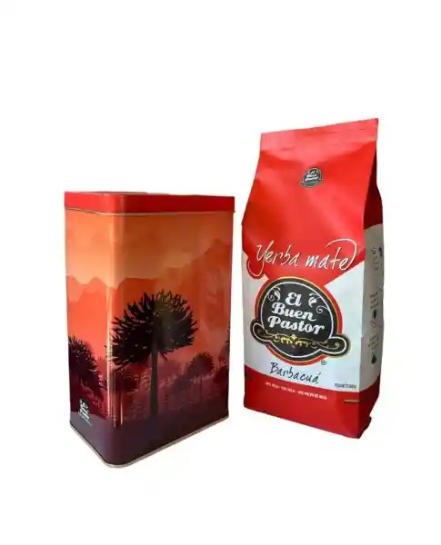 Set el Buen Pastor Con 2 Unidades. Yerba Mate Barbacuá Tradicional 500 g + Yerbera de Lata de la Nueva Edición 1 Und. Del Buen Pastor Incluye Dispensador de Yerba.