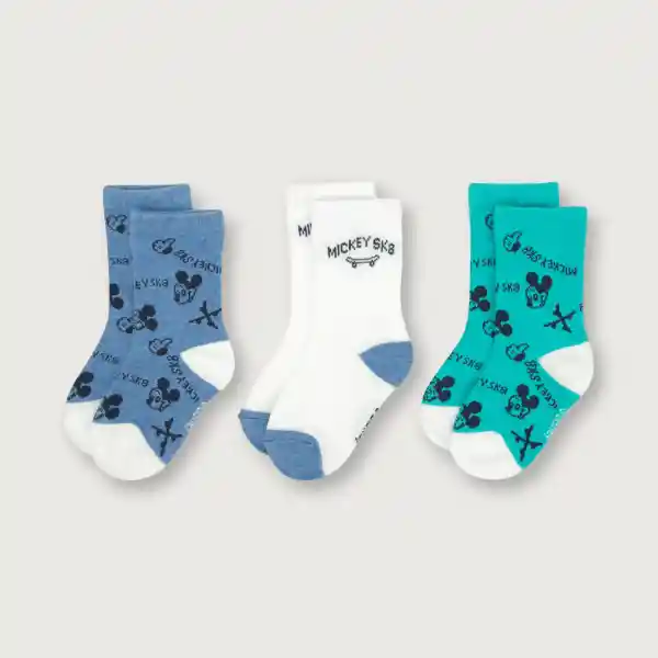 Set Opaline Contiene 3 Pares. Calcetines Niño Con Demarcación en Puntas y Talones. Set Multicolor y Print Disney en Tonos Verdes Azul Blanco y Marino.