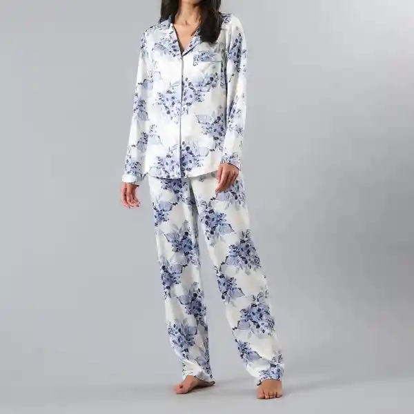 Set Flores Contiene 2 Unidades. Camisero + Pantalon Satin Print Color Navy Talla L 100% Polyester.