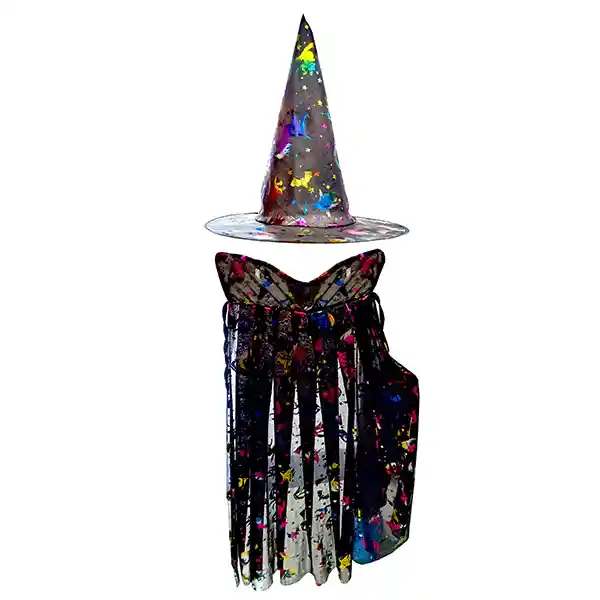 Set Bruja capa y sombrero.La capa mide 82x125 cm aproximadamente