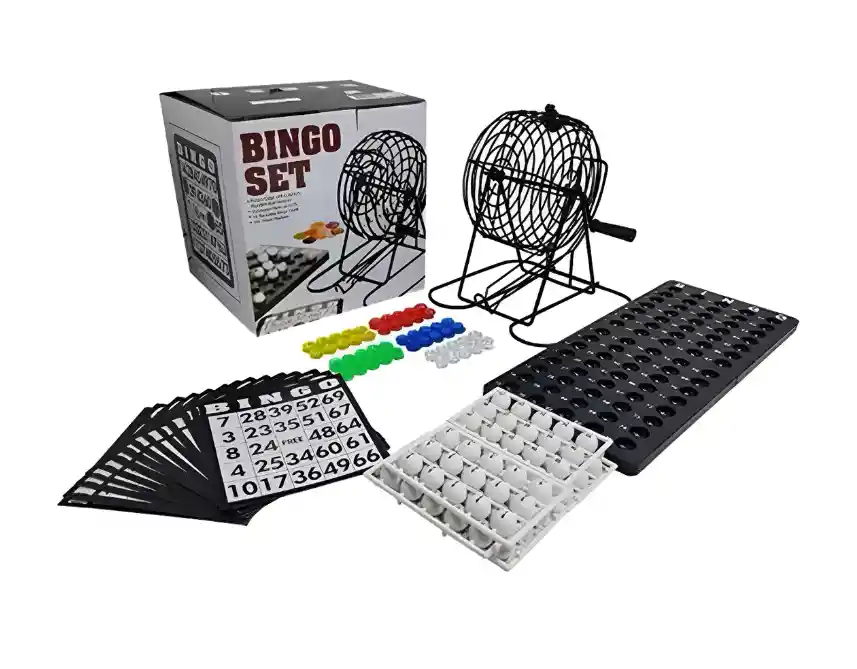 Tómbola de bingo de metal de lujo con todos los accesorios para una entretenida tarde de juegos! El BINGO es un juego clásico adorado por toda la familia. Con esta tómbola podrás ser el anfitrión y hasta 7 personas pueden jugar al mismo tiempo. Diversión asegurada para toda la familia! Este set de bingo incluye 1) Tombola metálica 2) 75 pelotas 3) 18 cartones de bingo 4) 150 fichas Dimensiones/peso Producto:Base y revolvedora : rueda : 12 x 12 cm Entera + base : 20 cm .carton de numero : 14 x 12 cm bingo receptor de numero 15 x 16 cm Material : Metal