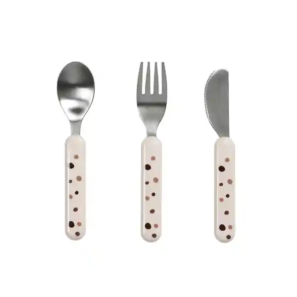 Deja Que tu Pequeño Aprenda a Comer Por su Cuenta Con Este Práctico Set de Cubiertos! Incluye un Cuchillo un Tenedor y Una Cuchara. Material: Mango: Plástico de Calidad Alimentaria Acero Inoxidable: 188 Medida: 14 cm de Largo Cuidados: Apto Para Lavavajillas. No Utilizar en Microondas País: Dinamarca.