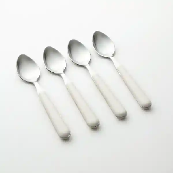 Set Contiene 4 Unidades. Cucharas de té de Acero Inoxidable Con Base Abs de Color Blanco Hueso.