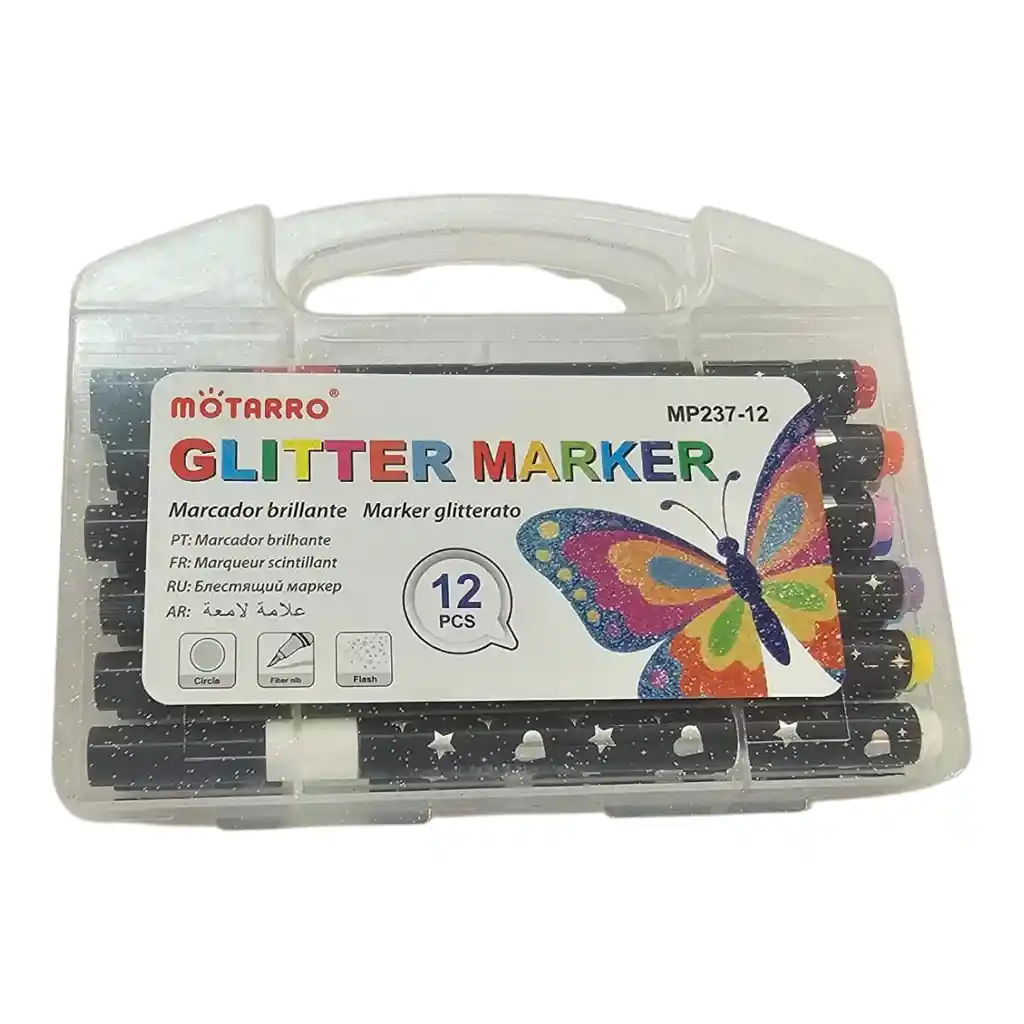 Añade efectos centelleantes a tus trabajos de arte y oficina. Estos marcadores están formulados con una base de tinta líquida y partículas de purpurina fina que no se desprenden fácilmente una vez secas. Especificaciones técnicas: Cantidad: 12 unidades (Colores variados). Tipo de tinta: Tinta con base de agua y pigmentos brillantes. Punta: Media, ideal tanto para rellenar figuras como para delinear. Seguridad: Tinta no tóxica, apta para uso escolar y profesional. Aplicaciones: Bullet journal, tarjetas de felicitación, caligrafía decorativa y manualidades DIY. Opción 3: Formato de "Beneficios" (Corta y Persuasiva) ¿Por qué necesitas estos Marcadores Glitter en tu estuche? ✍️✨ Efecto 3D de luz: El brillo se mantiene intenso incluso después de secar. Sin desorden: Toda la magia de la escarcha (glitter) sin el desorden del pegamento y la brillantina suelta. Combinación perfecta: Úsalos junto a tus Outline Markers para crear capas de efectos increíbles. Variedad: Con 12 colores, siempre tendrás el tono justo para cada ocasión.